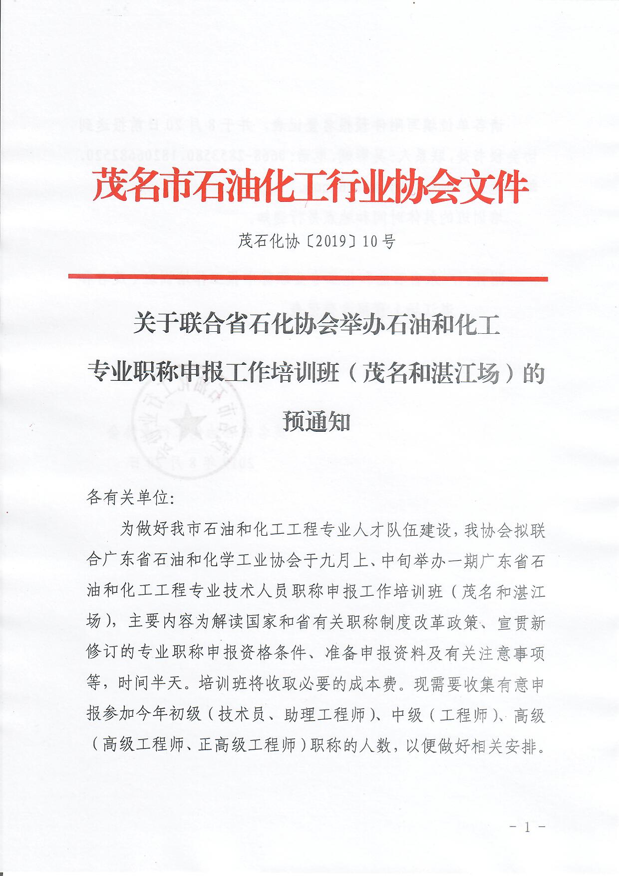 【茂石化協(xié)〔2025〕3號(hào)】關(guān)于舉辦2024年度市化工輕工環(huán)保中(初)級(jí)專(zhuān)業(yè)職稱(chēng)評(píng)定申報(bào)培訓(xùn)班的通知